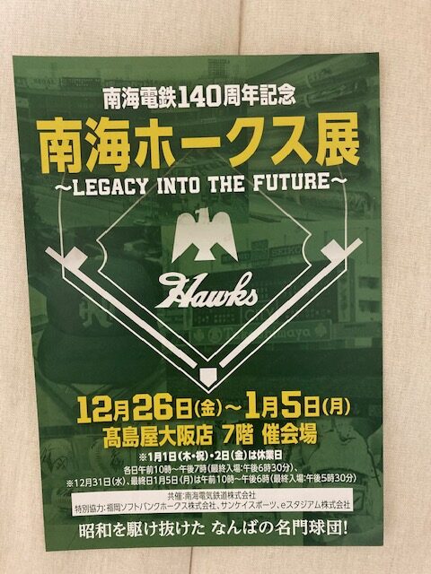 2026年01月07日 | 個別ページ年末から年始にかけて高島屋大阪店にて「南海ホークス展」という催しがありました。