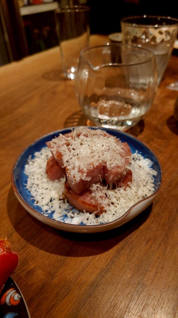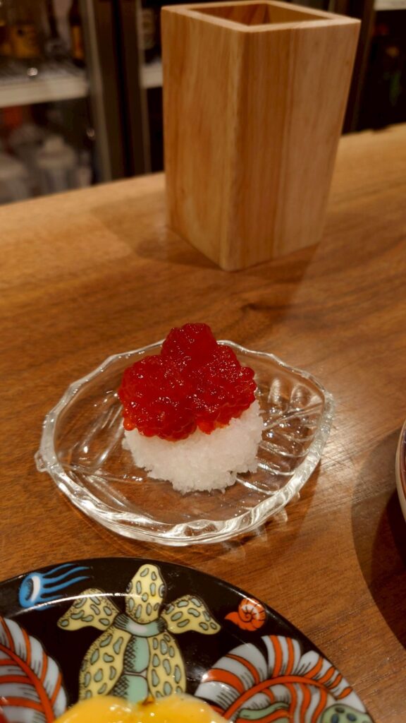 筋子のオリーブオイル漬けは、日本酒にもよく合う面白いアテでした。