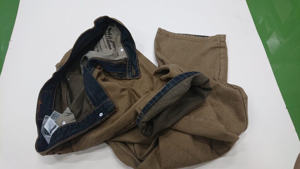 確かに、所々青色の生地が残ってます。ブラウンと売られてましたが