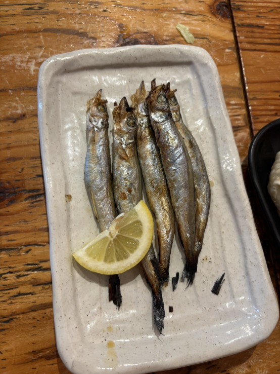 一品料理は、ししゃも・イカ一夜干し・あなご・かつおのたたき。