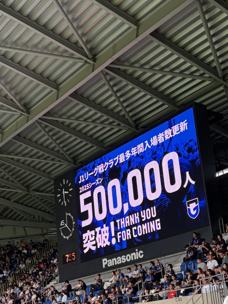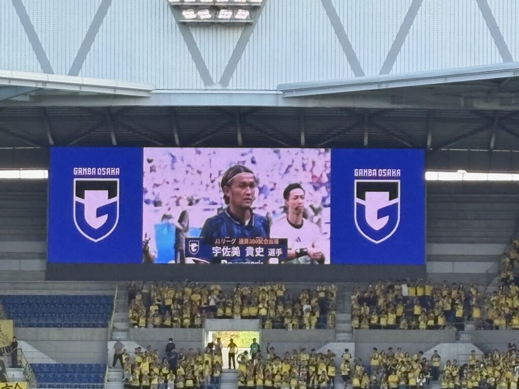 ガンバの宇佐美選手のJ1通算300試合出場のメモリアル試合で、今期の観客動員数50万人のJリーグ記録を更新するなど、記念づくしの試合でした。