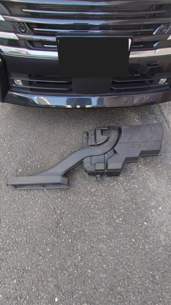 5分以上経過後、ボンネットを開け、エアインテークを取り外します。