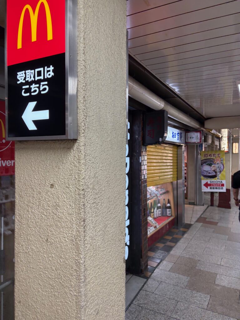 梅田のマクドナルドを豪快に通りすぎて一つ目を左です。