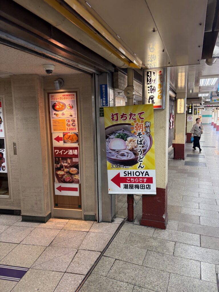 2025年12月10日阪急梅田駅近くの潮屋さんにモーニングそばを食べに行ってきました。