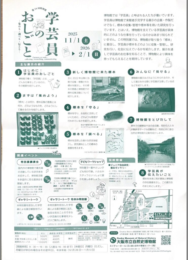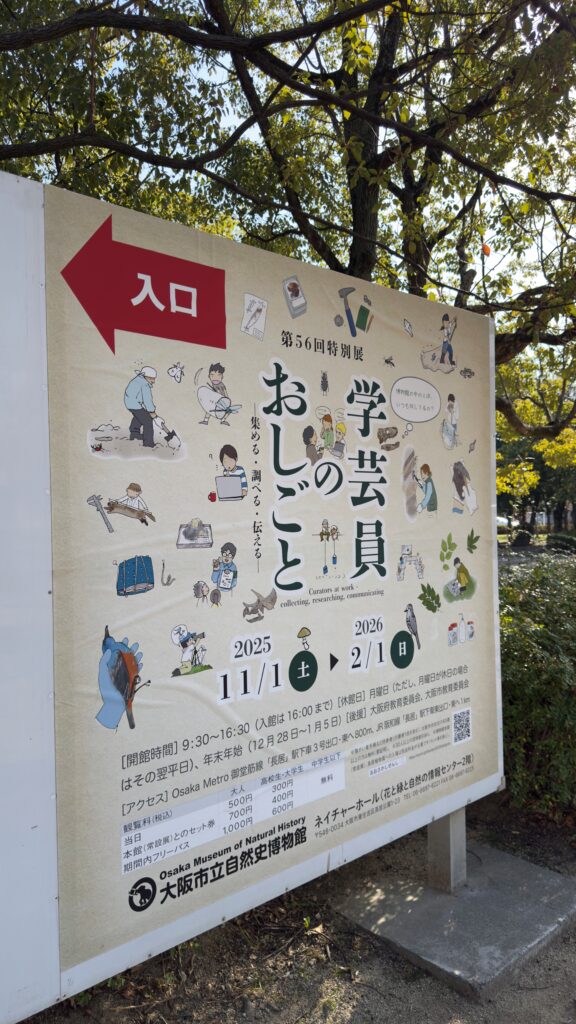 長居公園の大阪市立自然史博物館で行われている、”学芸員のおしごと”展に行ってきました。