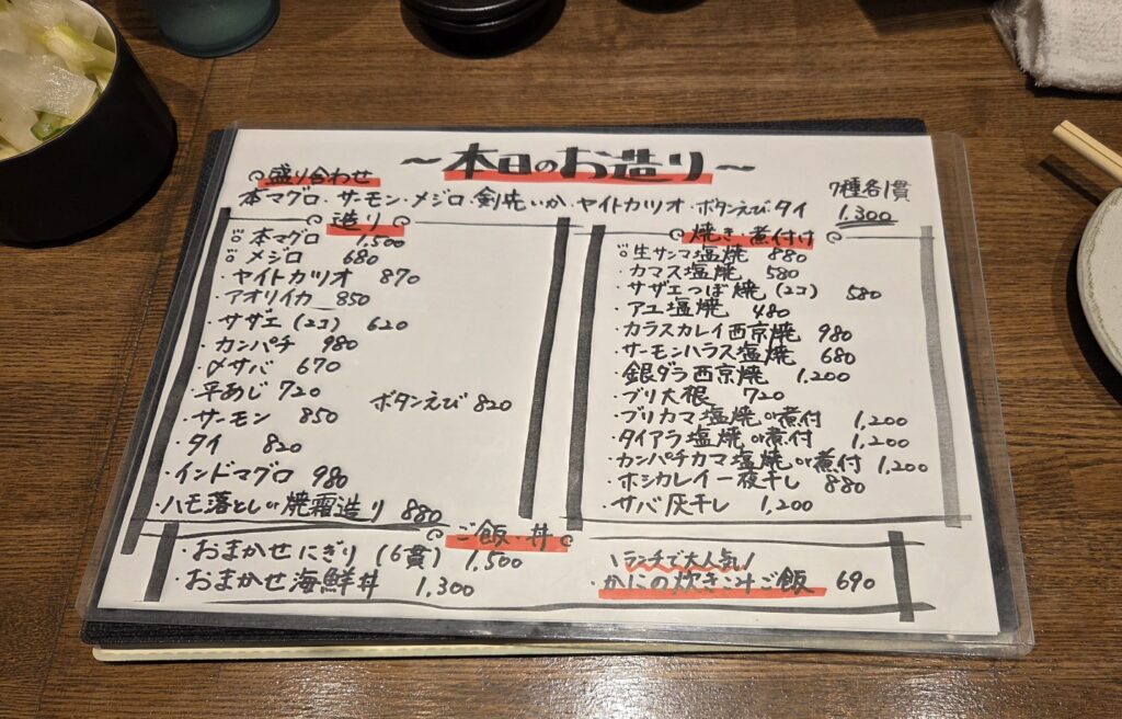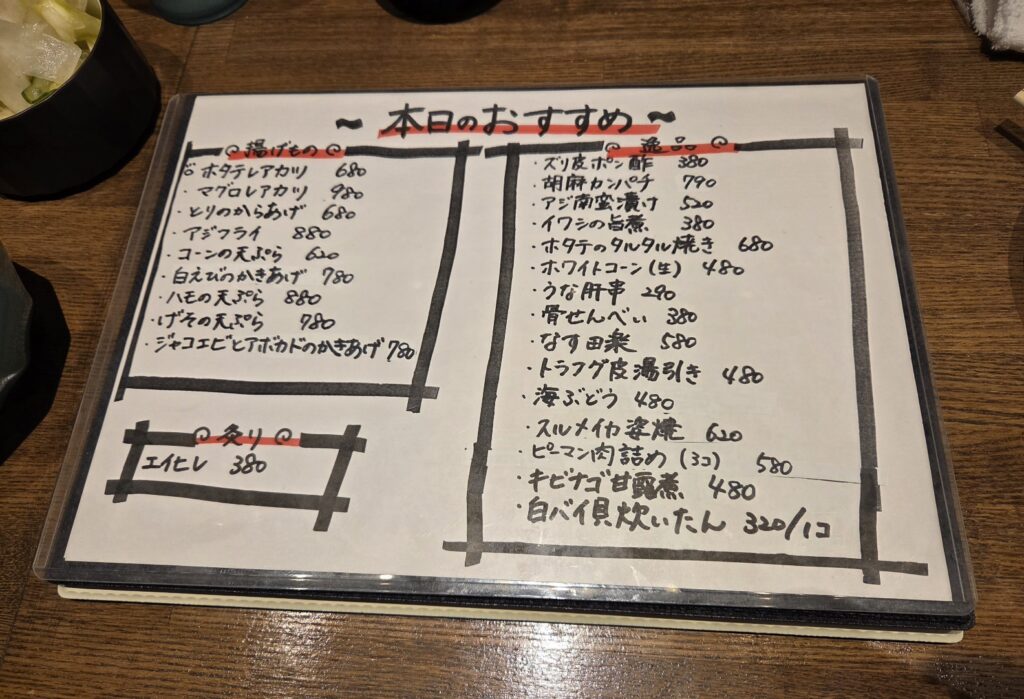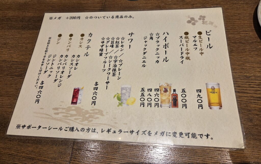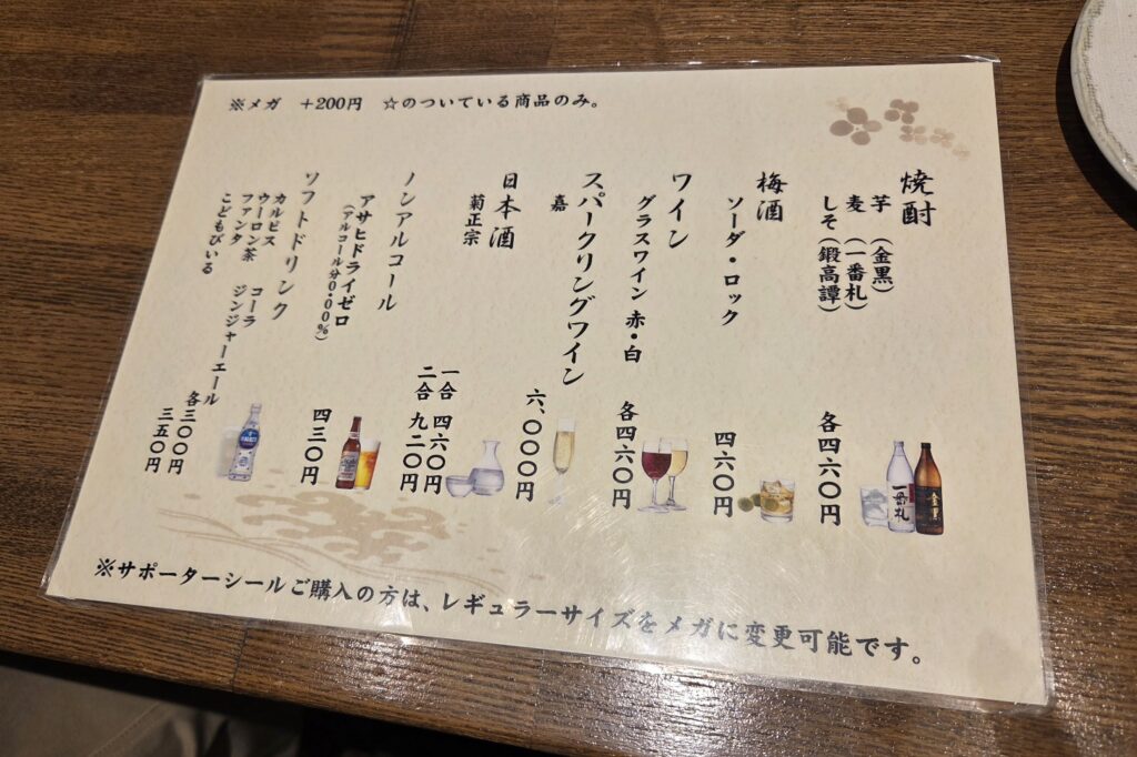 いつも1杯目はビールしか頼まないのですが、一応メニューはじっくり目を通します。