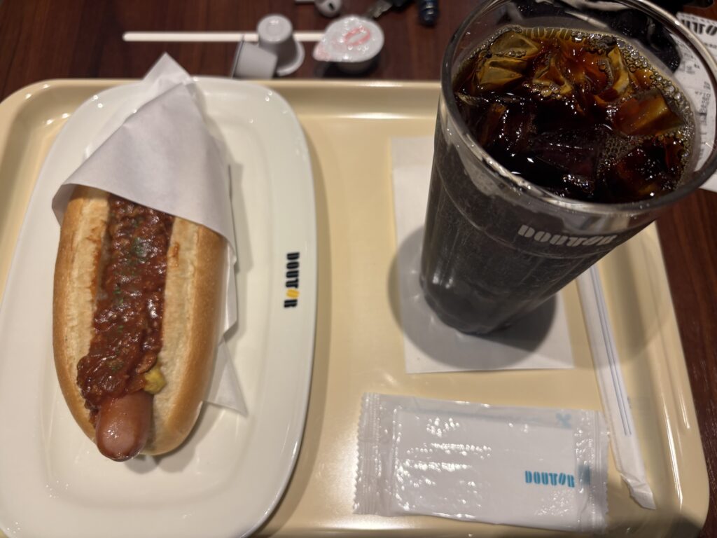 最近少し休みがあると静岡県にバイクできておりまして、このガソリンスタンド併設店でホットドッグを食べております。