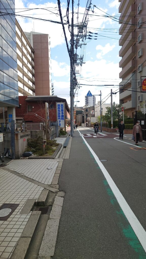 右手には阿倍野高校の裏側が見えています。そしてさらに南下して松虫通を目指します。
