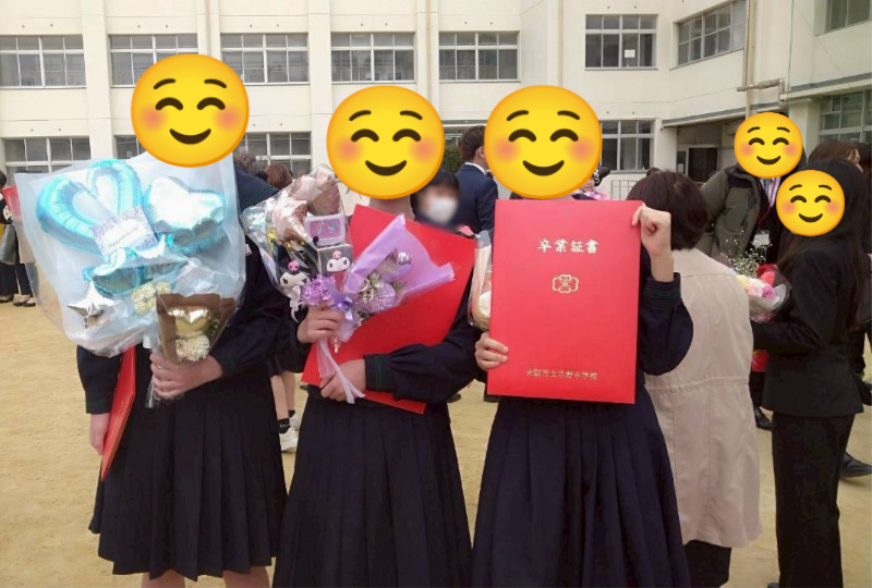 長女は小学校からの仲良し三人組で、楽しそうに写真を撮っていました。