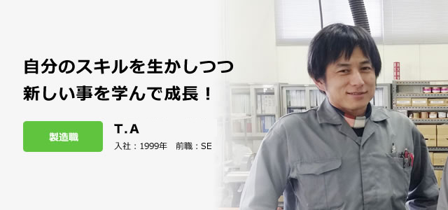 先輩の声前職はSEをしておりましたが会社の倒産により転職する事になりました。前職の経験を活かしながらも学生時代に学んだ知識も活かして、デスクワークだけではなく、実際にモノを生み出す仕事をしたいと思っていました。