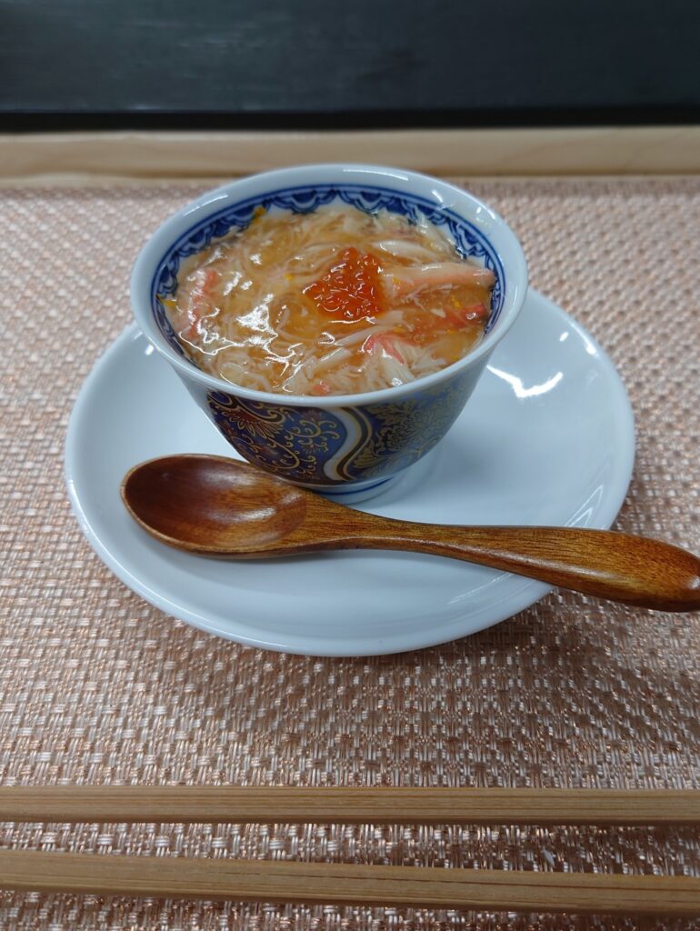 一品目は、カニとイクラがたっぷり入ったあんかけ茶わん蒸し。